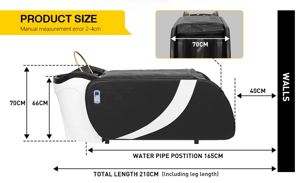 Designed with soft PU leather upholstery for maximum comfort, a durable ABS plastic basin for long-term use, and a lifting headrest for added functionality. -