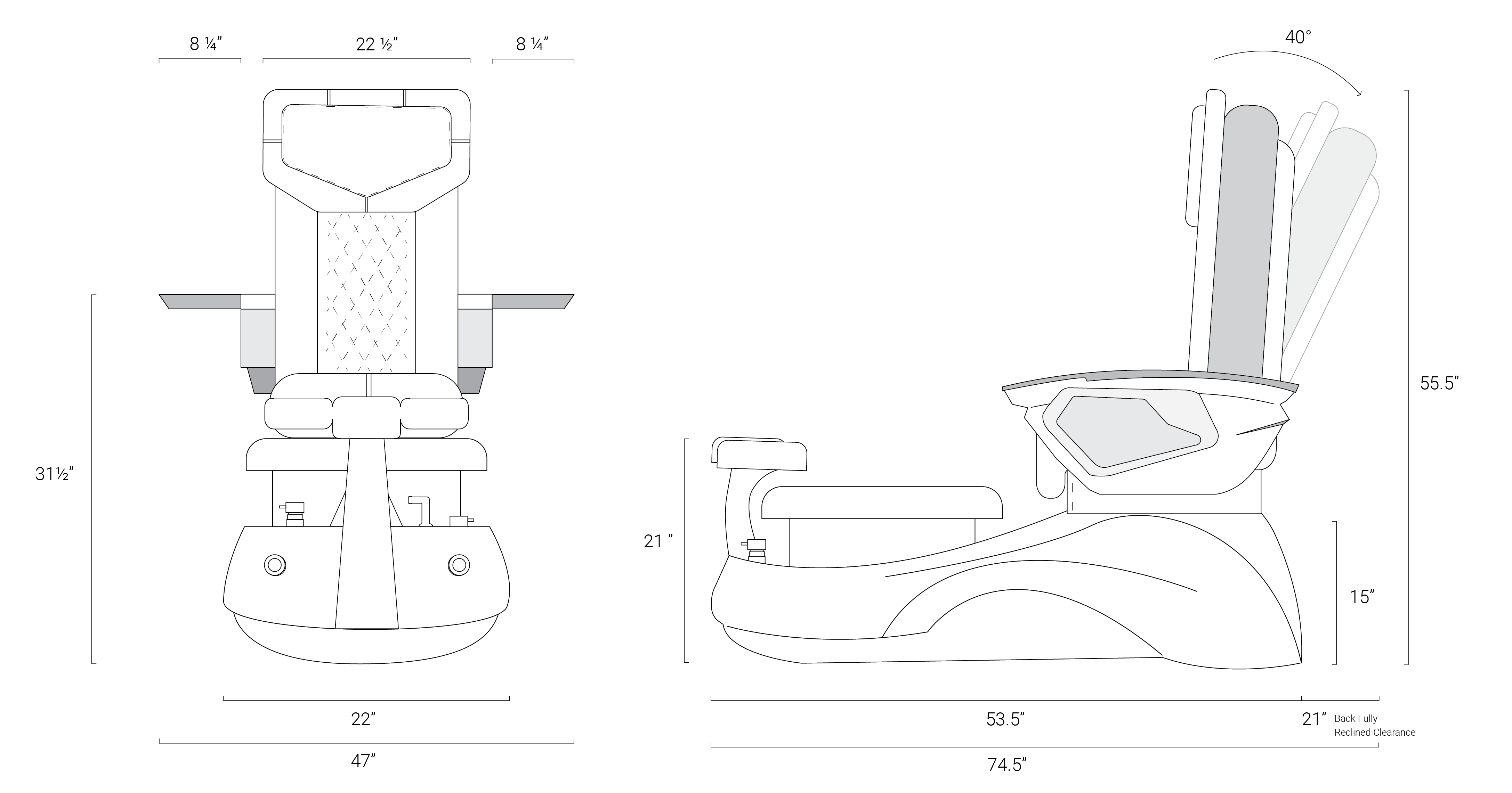Pedicure spa chairs need a custom built tub prior to ship |