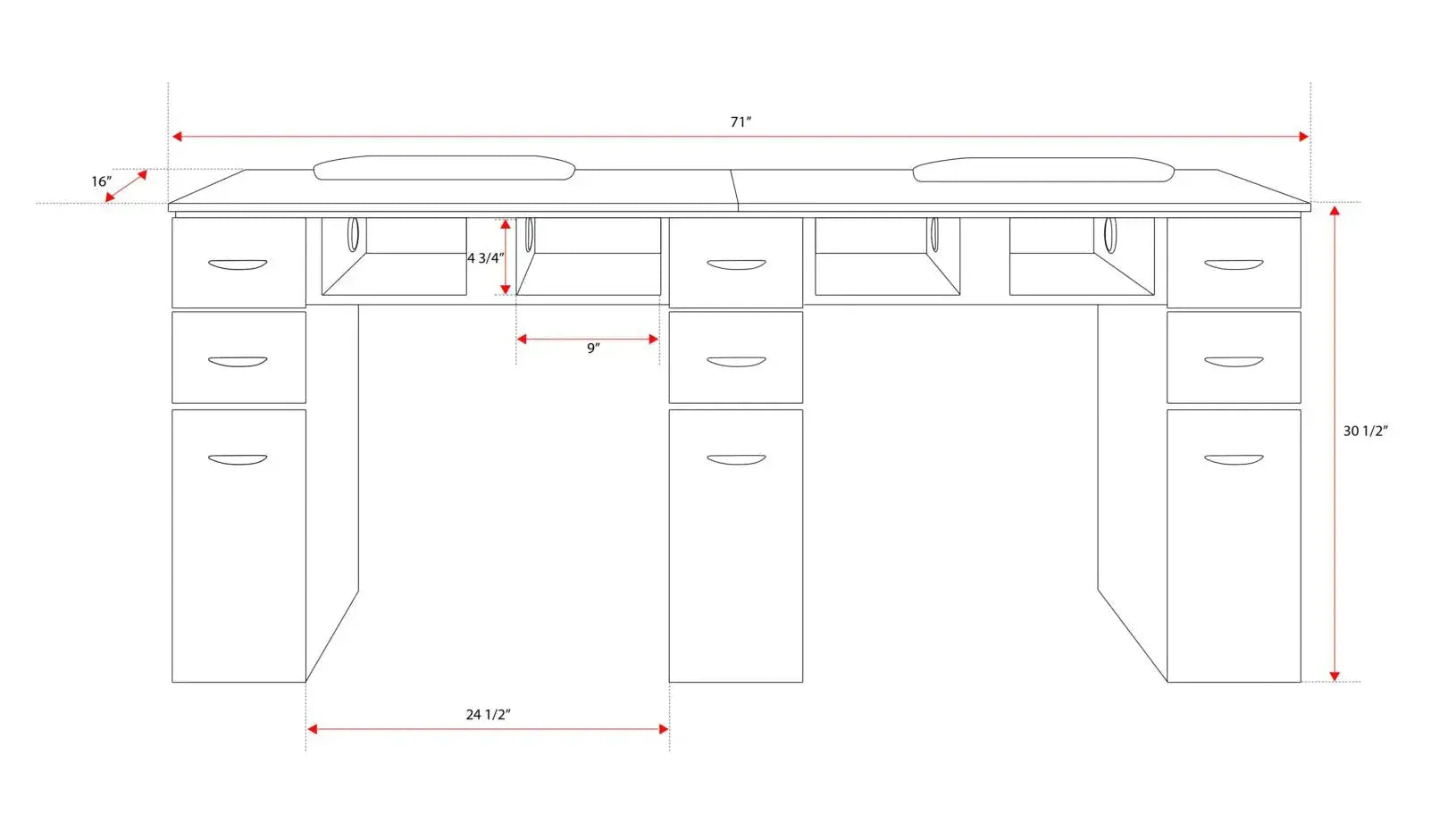 Double Professional Nail Table with Drawers & Optional Ventilation