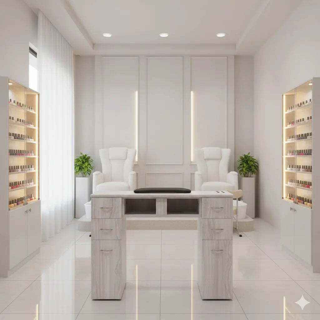 Designed to streamline your workflow, this station offers generous storage, built-in convenience features, and a comfortable setup that enhances both technician performance and client experience.