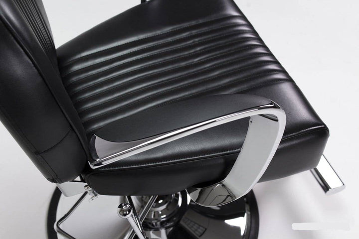 The Austen All Purpose Chair offers a refined look and reliable performance for barbershops and beauty salons alike. With a smooth 45-degree recline and a sturdy chrome hydraulic pump, this chair is built to support your workday—cut after cut, style after style.