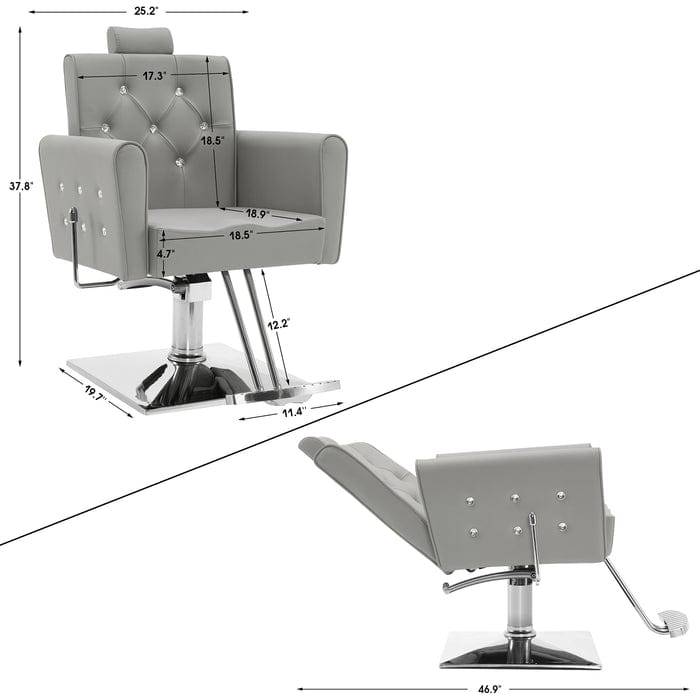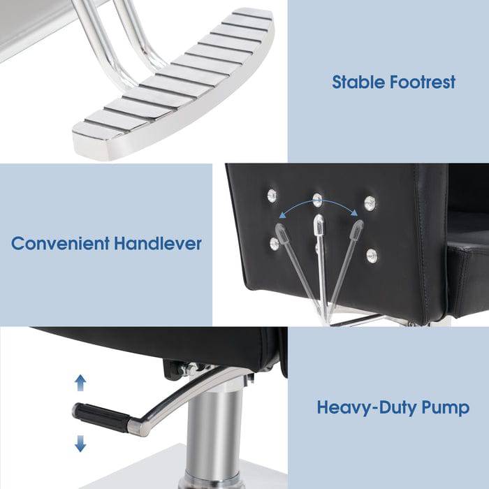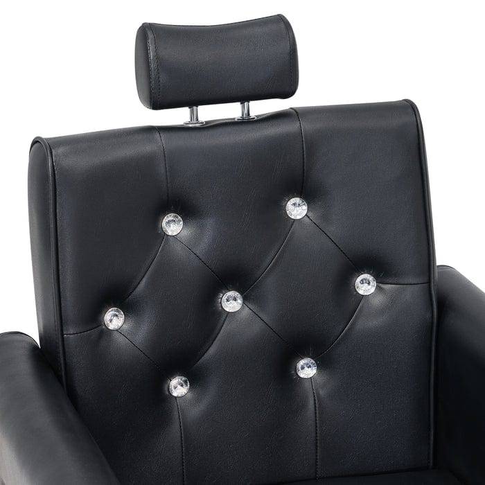 - ANTIQUE DESIGN: The exquisite stitching and attention to detail give a warm welcome to clients, adding an elegant and vintage touch to the overall style of your barber or salon shop. The handcrafted sequins and sparkling acrylic diamonds on the backrest and armrest of the soft leather complement the vintage design with modern elements, creating a unique and sophisticated atmosphere.