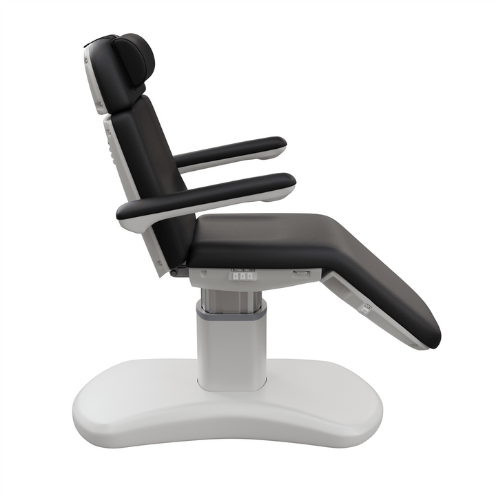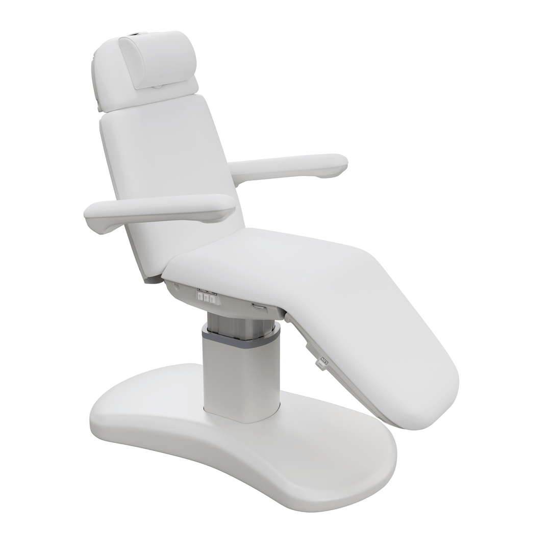 The Spa Numa LUCENT is a modern and efficient treatment chair with four motors controlling height, backrest, footrest, and tilt. It comes with armrests that can be reversed or removed and features a pedestal column base for vertical movement, perfect for tight spaces. Its tapered base design enables therapists to work closely with clients, making it suitable for precise treatments. The chair is upholstered in high-quality vegan leather, offering both style and ease of cleaning, thus contributing to the spa's overall look and cleanliness. The Spa Numa LUCENT stands out for its minimalist design and superior functionality, making it an excellent addition to any spa or salon seeking to provide a top-tier customer experience.
