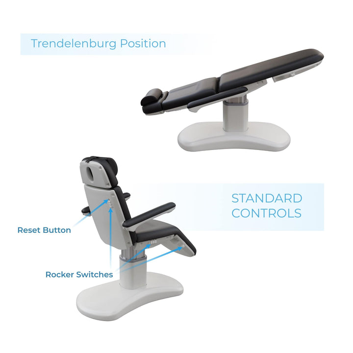 - Four motors for adjustments (backrest, height, footrest, tilt)