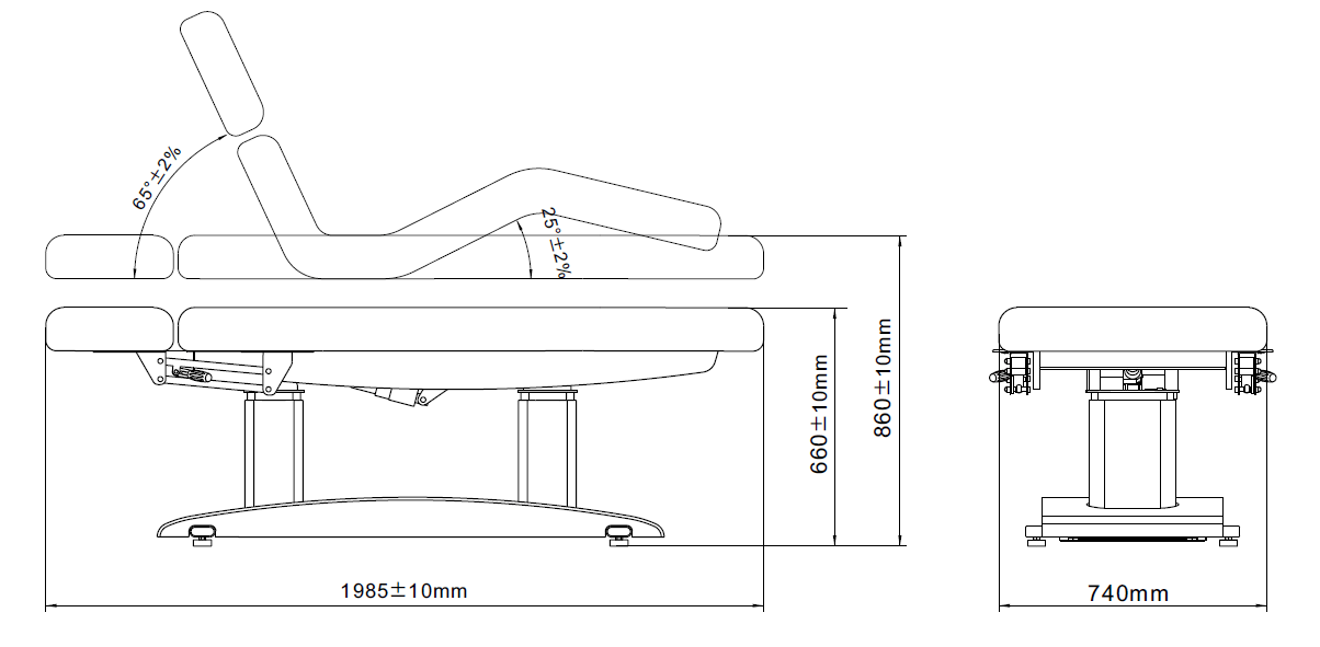 Angle adjustment of the whole bed | - 10°~ 10° ±10% |