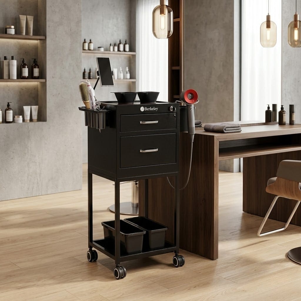 Storage DrawerTwo pull-out drawers for storing various styling tools and accessories. |