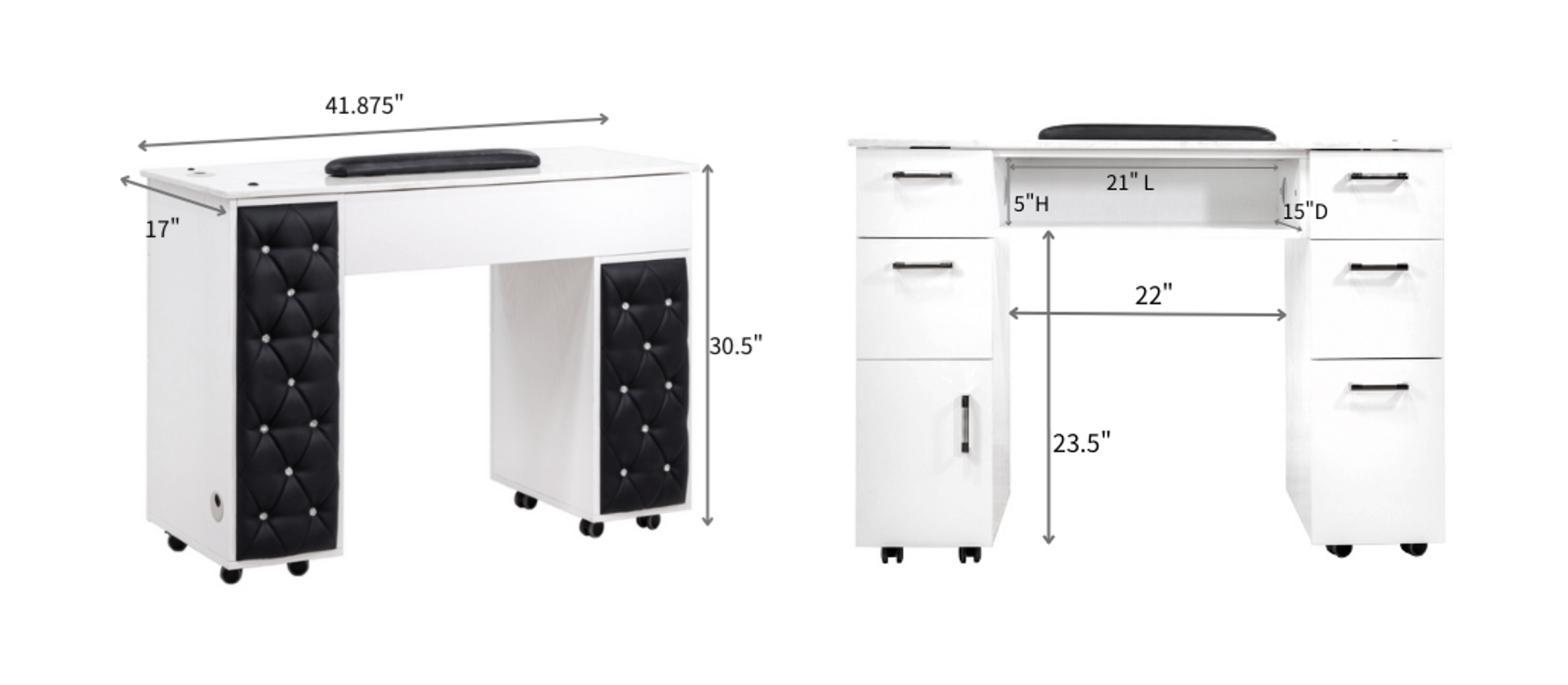 5 Side Drawers Enough space to hold all nail products needed for the manicure |