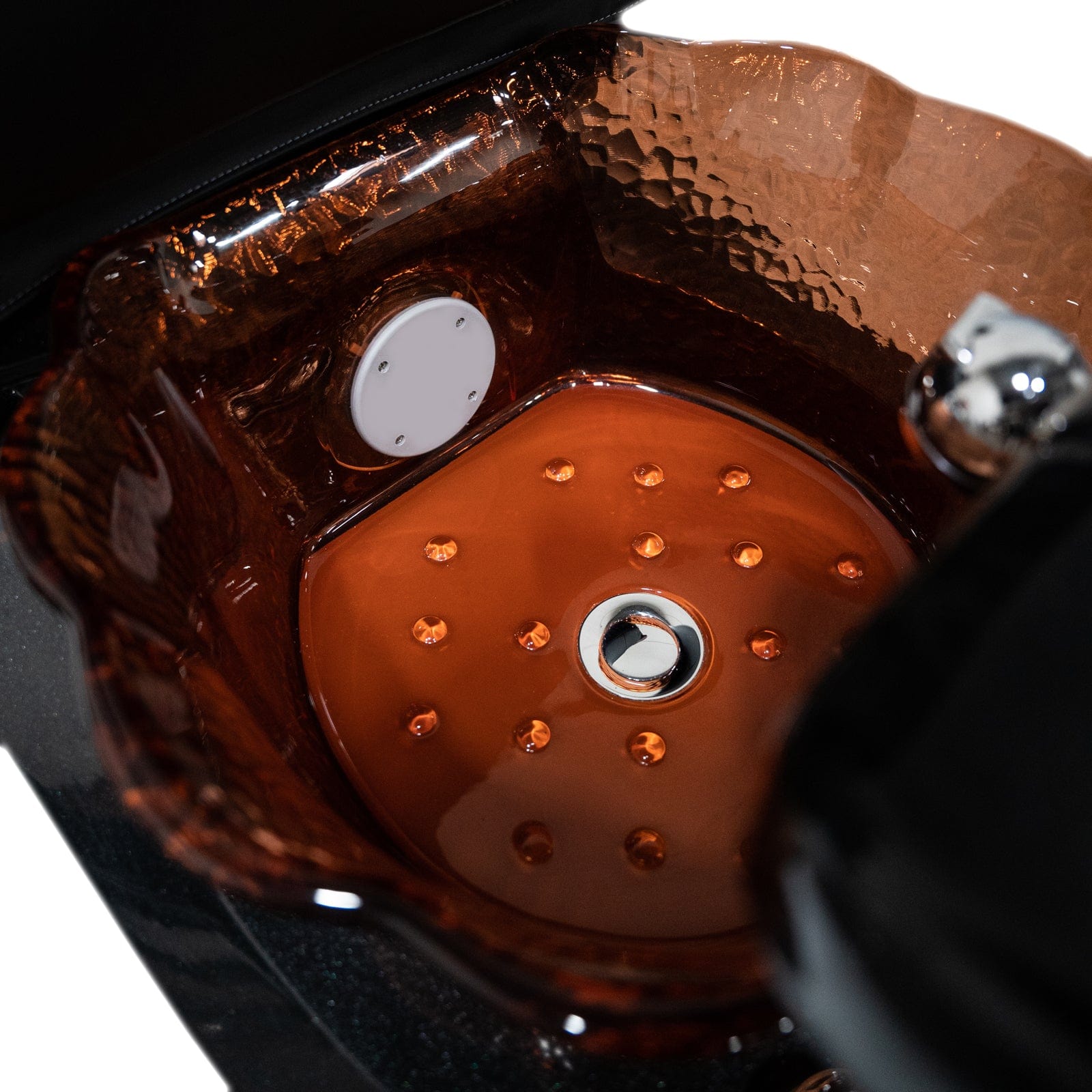 Inspired by the beauty of the Lotus flower, the Lotus II Shiatsulogic LX Pedicure Chair combines modern design with luxurious functionality. Featuring LED lighting along both sides of the base and a sleek, semi-transparent glass bowl, this spa chair offers a sophisticated touch that enhances your salon's ambiance.