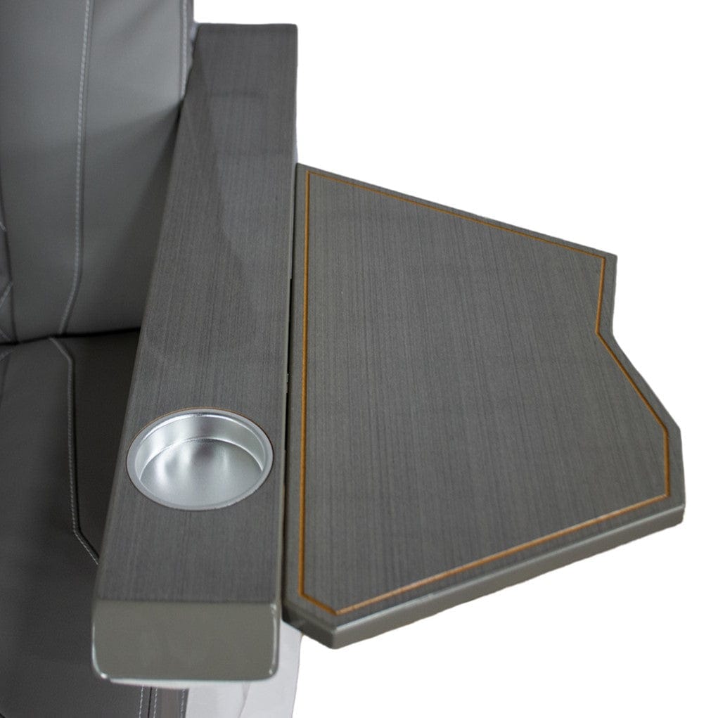 - Armrest: Patent-pending pistol style, coated with poly and UV layers for acetone and nail glue resistance. The tray design provides more workspace for simultaneous manicures and pedicures. Adjustable and easily tightened if loose.