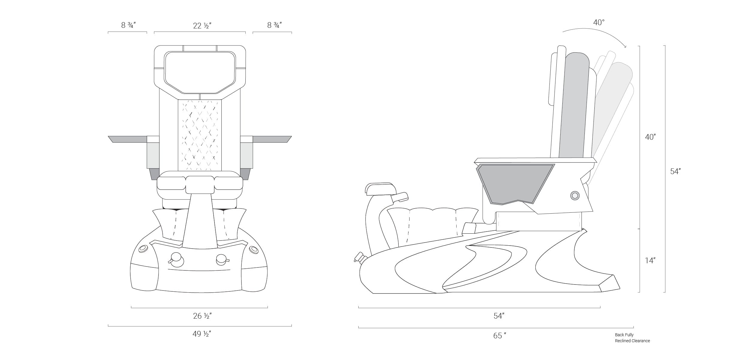 The VIGGO II Shiatsulogic FX Pedicure Chair is a top-of-the-line pedicure chair designed to provide a luxurious and comfortable spa experience. It features a heavy-duty fiberglass tub that is durable and long-lasting, making it perfect for use in busy salons and spas. The FX massage chair comes with several improvements over our other models, such as a built-in purse hook, a UV coating that improves its acetone AND scratch resistance, and a “Restore” feature that allows for a much easier cleaning and closing process!