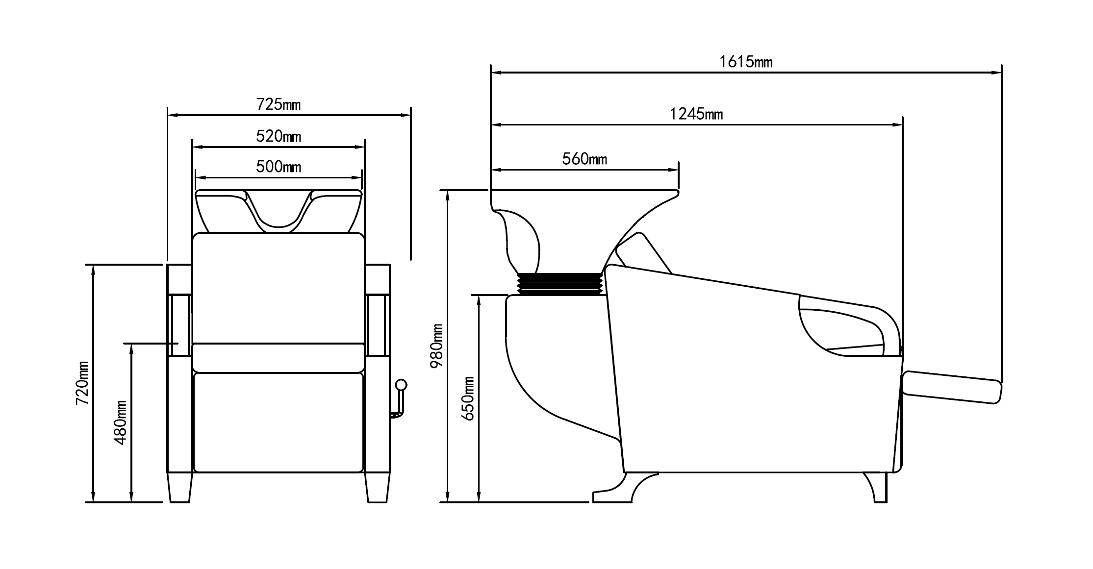 - Tilting Porcelain Shampoo Bowl with Complete Hardware Set