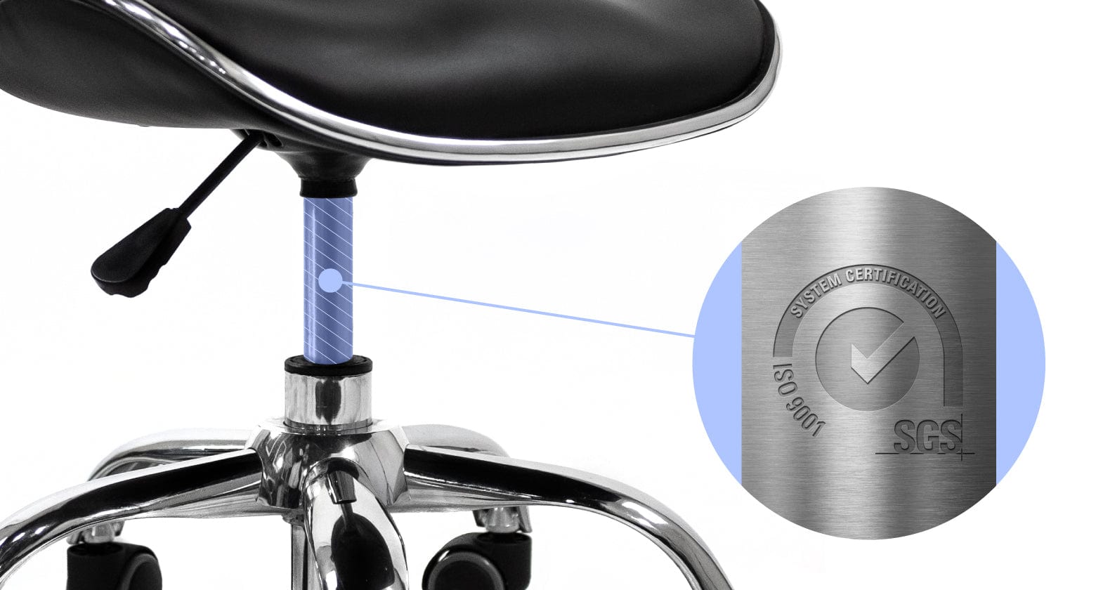 The UMI Tattooist Stool is designed to put you at just the right height to provide best tattoo service to your client. Even if you have a full day booked, this tattoo artist stool's firm back keeps your spine in proper form and the padded seat cushion keeps you comfortable through every session. The five wheels make it easy to scoot closer to your client or to slide around the studio. The tattoo artist stool polished chrome frame and sleek design will fit in any tattoo studio, and the chemical-resistant vinyl cushions will prevent spills or drips from ruining your stools.