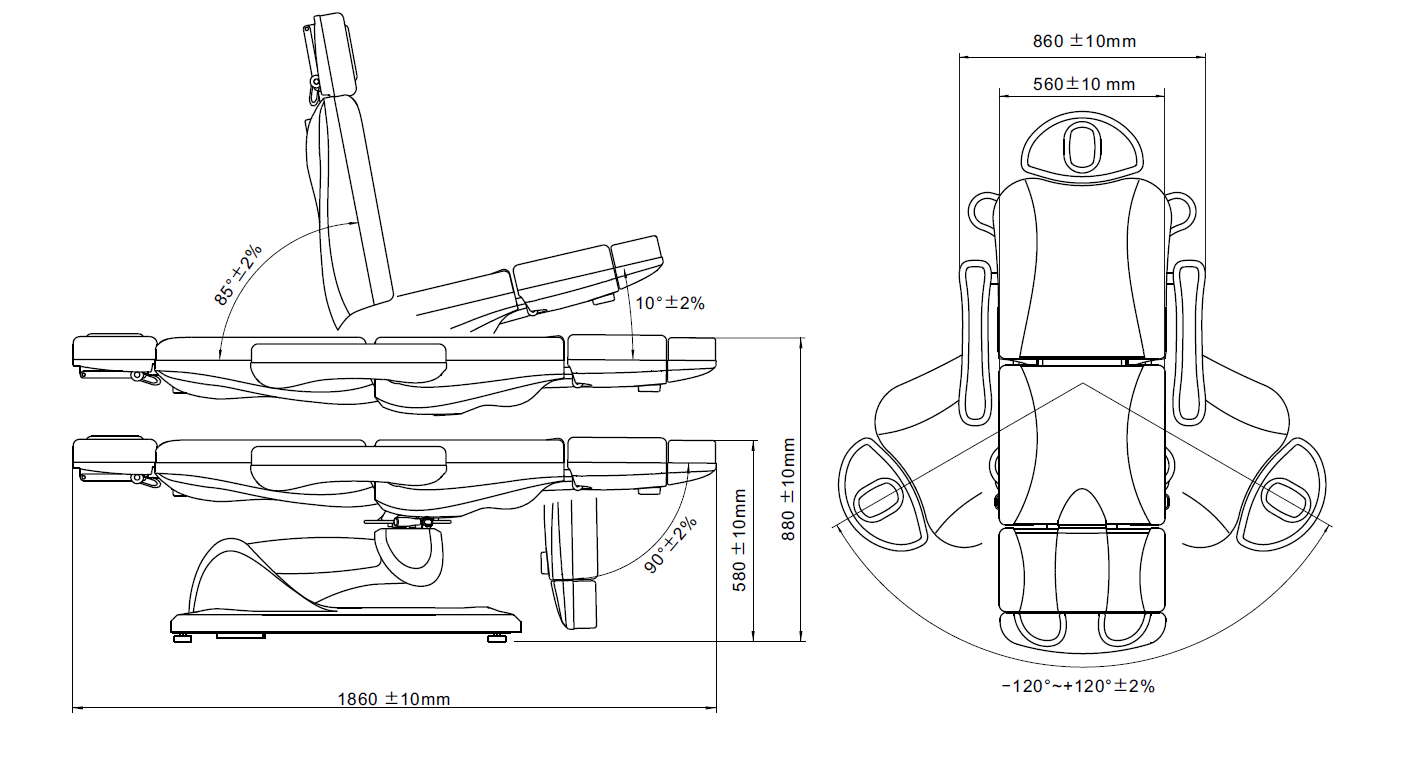 Angle adjustment of the backrest | 0° ~ +85° (±2%) |