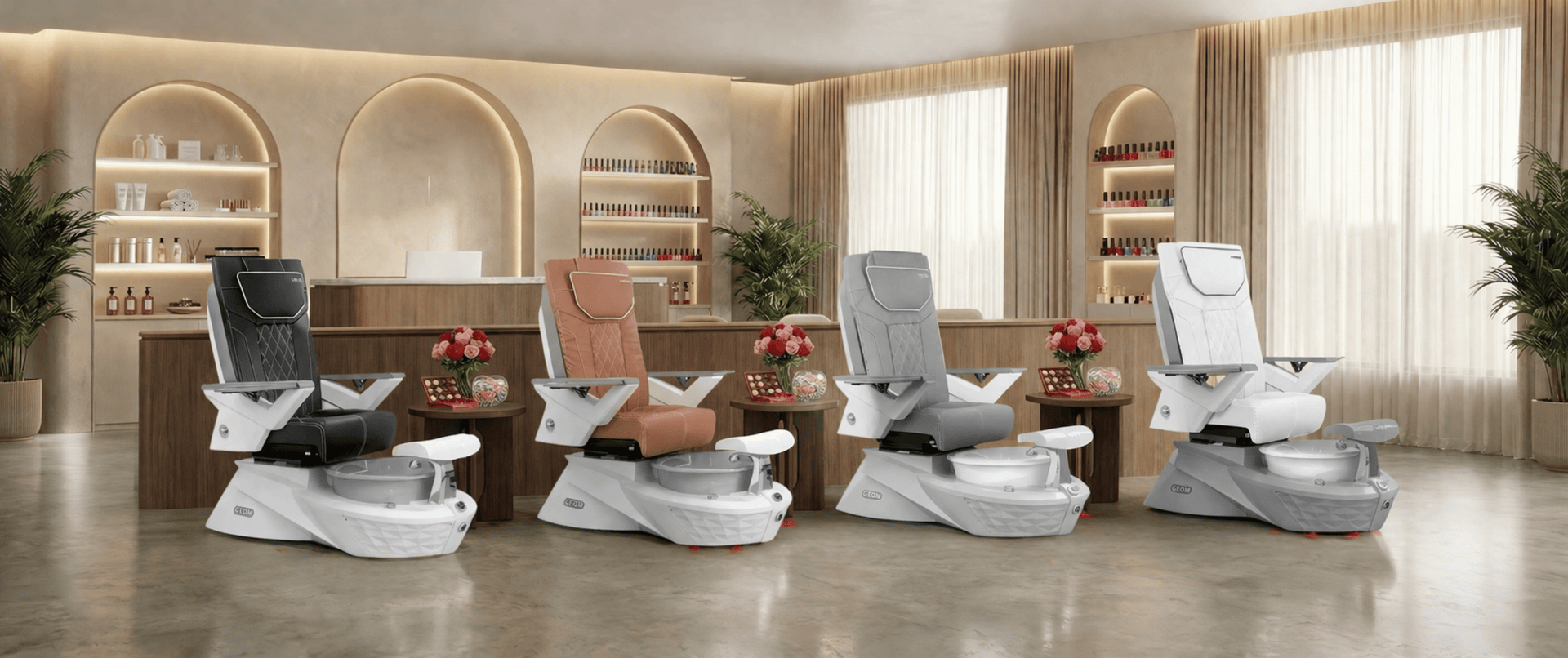Mayakoba pedicure spa chairs combine pipeless jet technology, shiatsu massage, and premium upholstery into one seamless unit — built to perform through every appointment, every day.