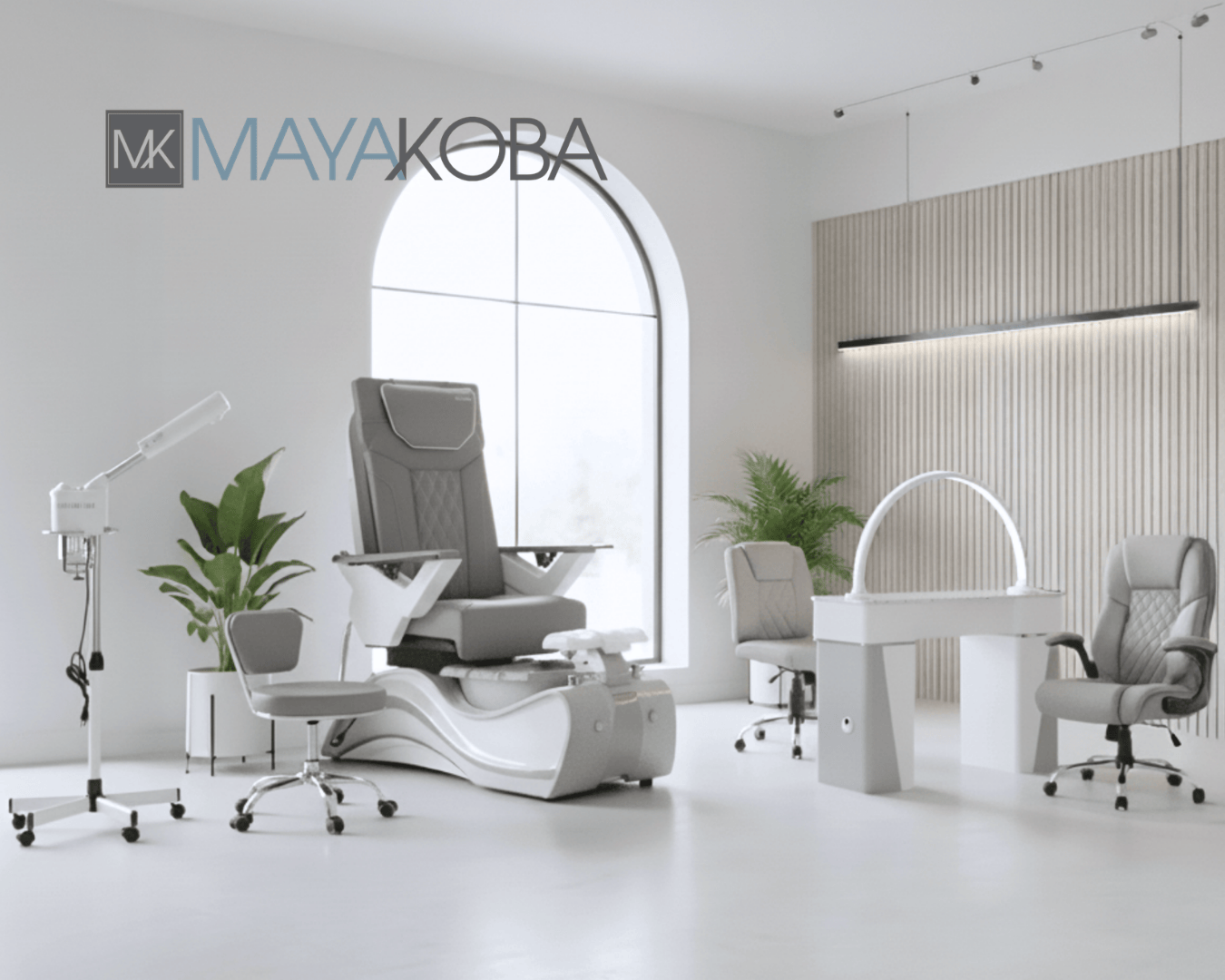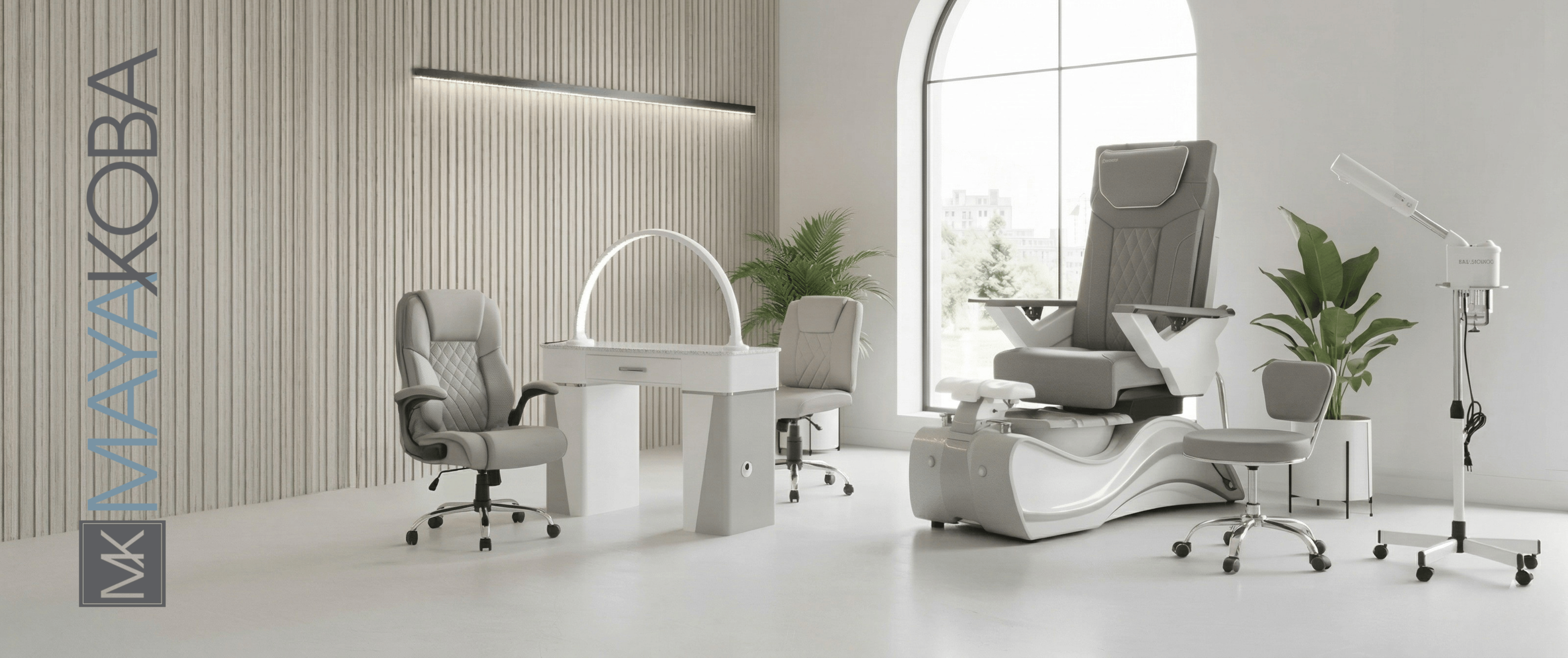 Mayakoba's coordinated furniture collections bring together manicure tables, seating, and trolleys in matching finishes — making it easy to create a cohesive, professional salon environment from day one.