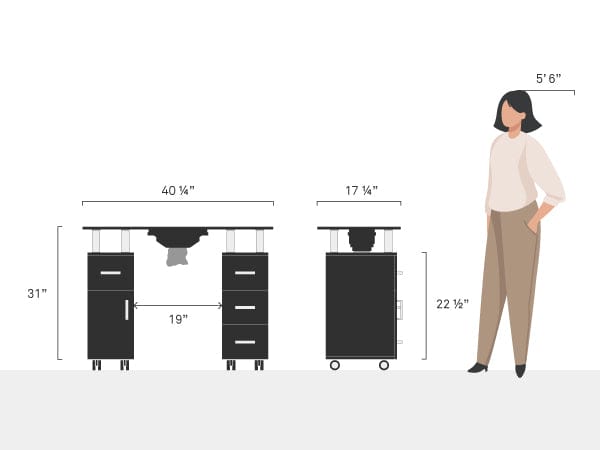 Designed for both style and functionality, it includes a built-in fan/dust collector to keep your workspace clean and professional, ensuring a seamless experience for both technicians and clients.