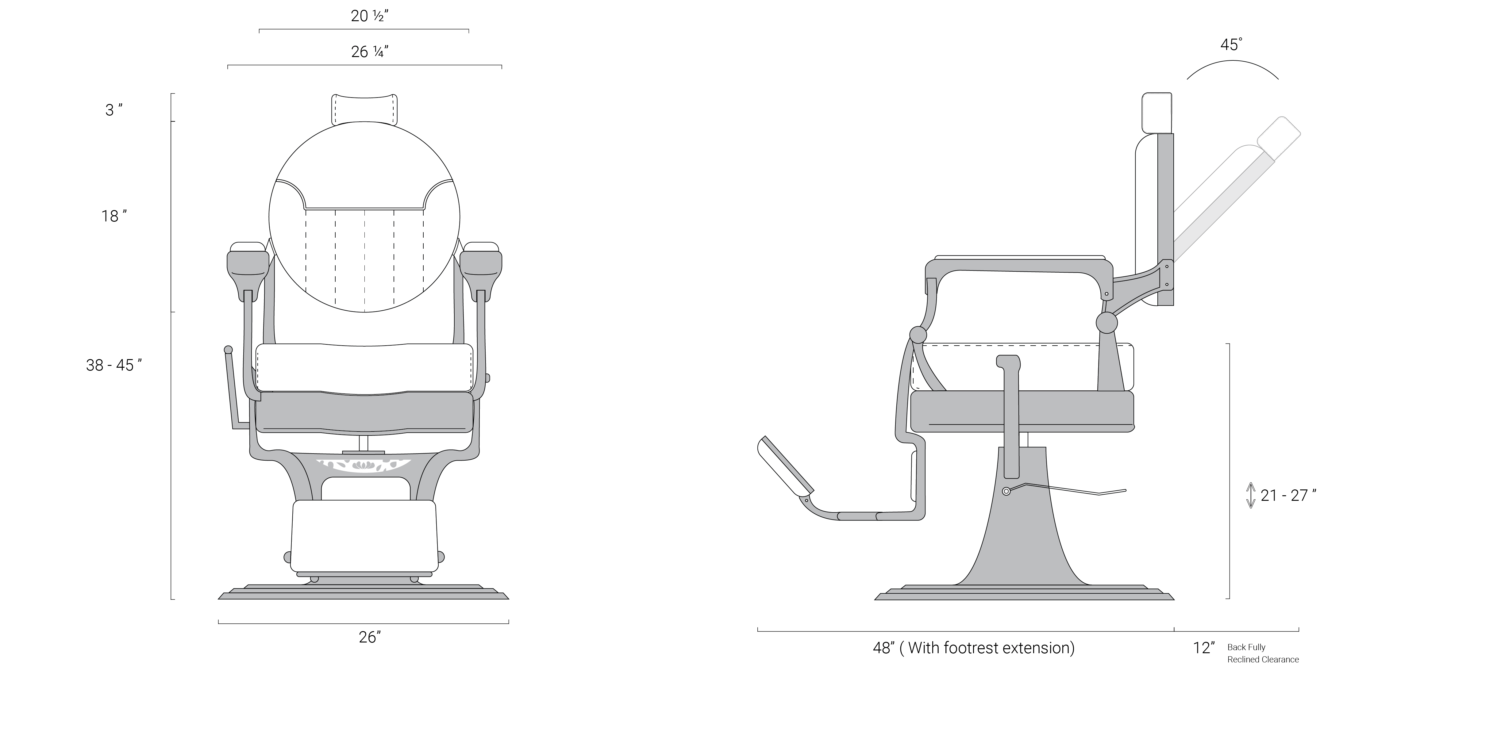 Recline Angle: Up to 45°